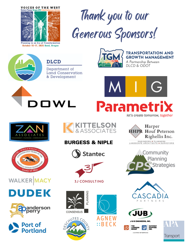 Sponsoring the conference provides a unique opportunity to participate in meaningful knowledge creation and knowledge sharing with planning professionals from across the Pacific Northwest and beyond. It’s your chance to align your organization with forward-thinking leadership, build valuable relationships, and demonstrate your commitment to resilient, inclusive, and innovative planning.